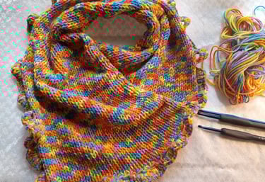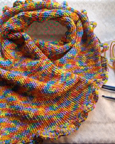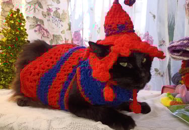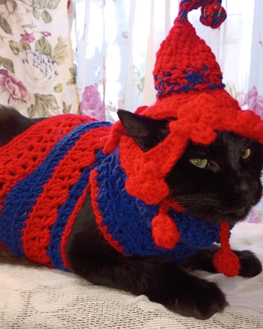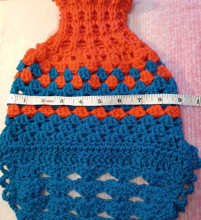 The blue yarn is one of my favorites for its softness. It has a soft baby fabric feel to it. It also made it stretchy able to fit wider range of pet dimensions.